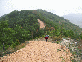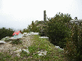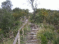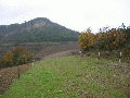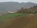 bideraino. Ilundainera jaisten den pista utzi, eta iparraldera doazen arrastoak jarraituko ditugu, bide zabal batean; bidea estutu egiten da, eta baso batean sartu. Basotik irtetean, aldapa gogor bat dago; enbor batzuk daude, eskailera eginez, helduleku eta guzti. Gaina berehala hartuta, belaze berdeetan barrena joango gara, gainaldetik, garai batean gailurrean zegoen gazteluaren hondakinak topatu arte. | |||